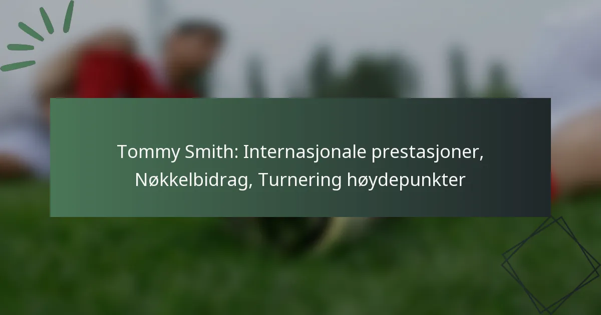Tommy Smith: Internasjonale prestasjoner, Nøkkelbidrag, Turnering høydepunkter
